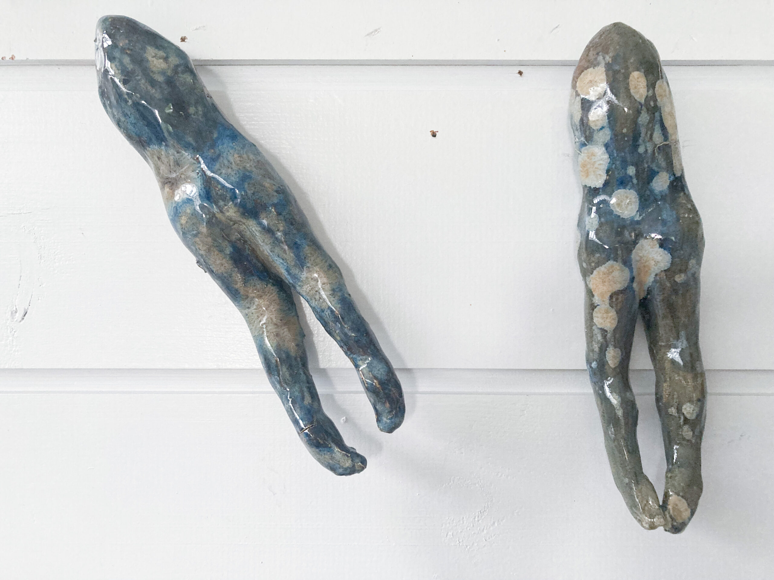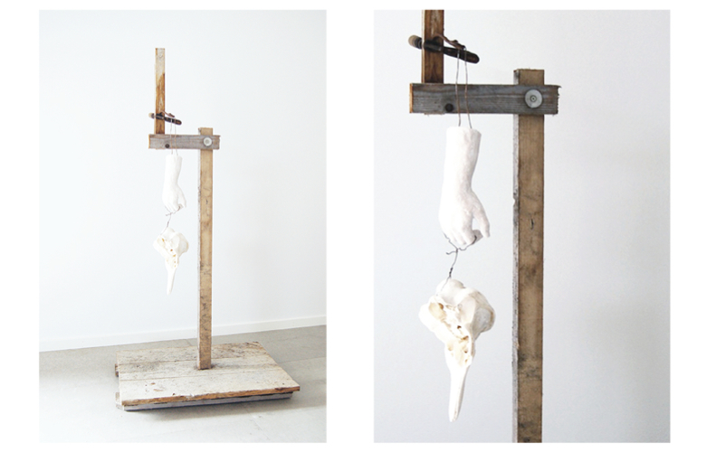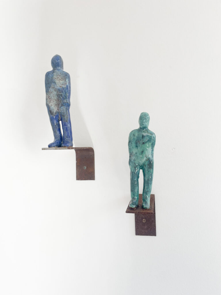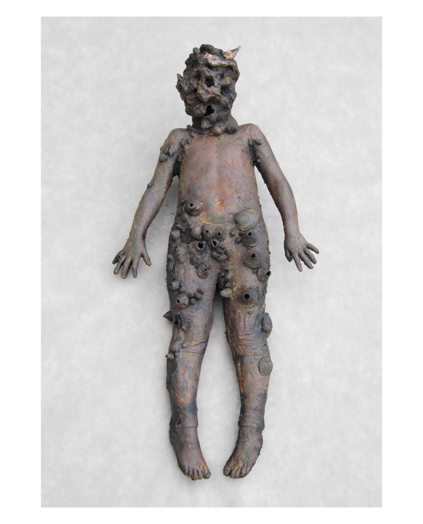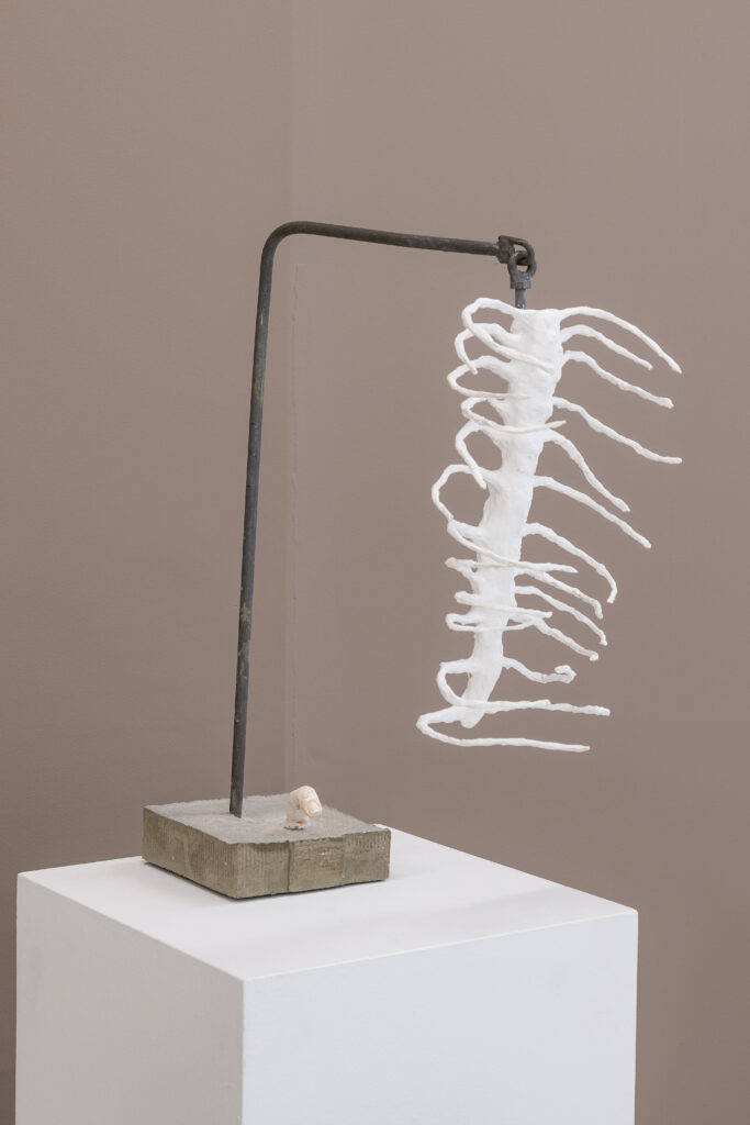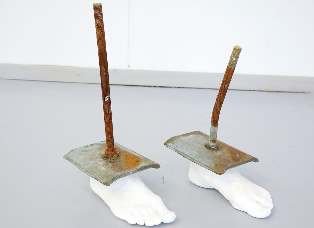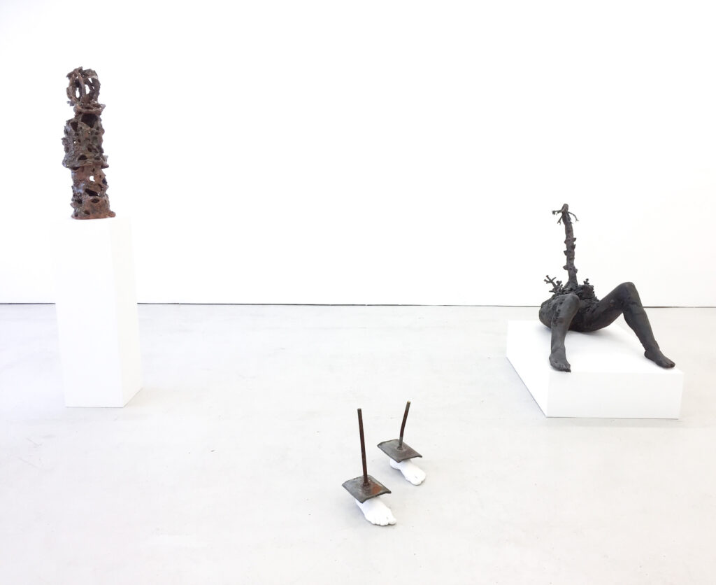 The starting point is parts of the human body, where artisanal processes such as modeling and casting are used. Furthermore, these parts are connected with other forms and objects, often found materials or leftovers. The intuitive and subconscious play a major role in the practice.