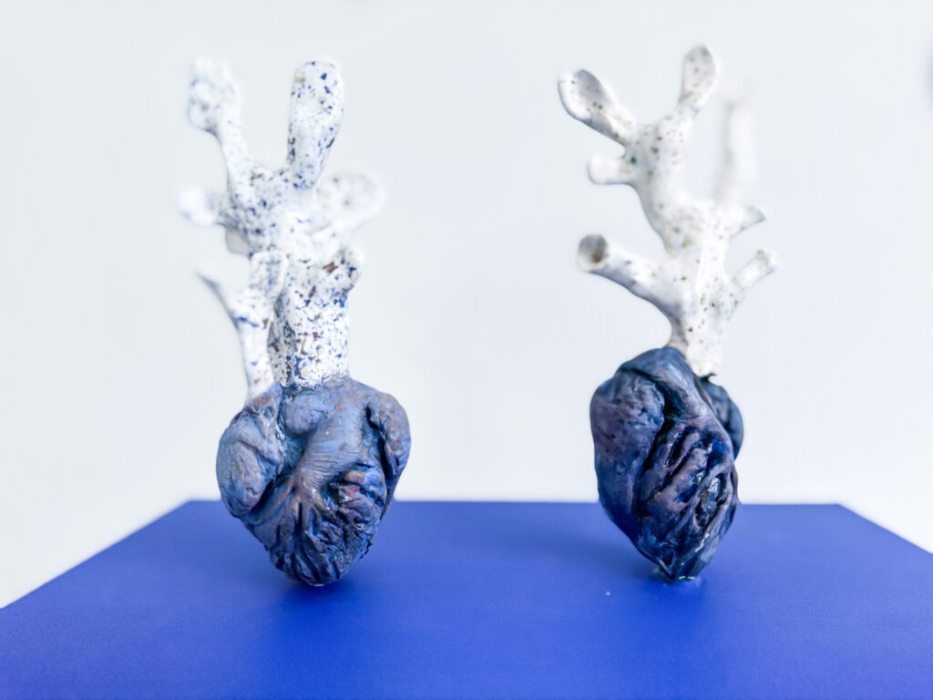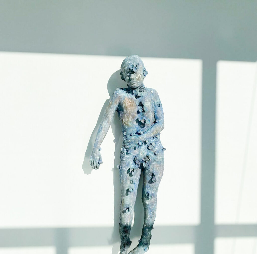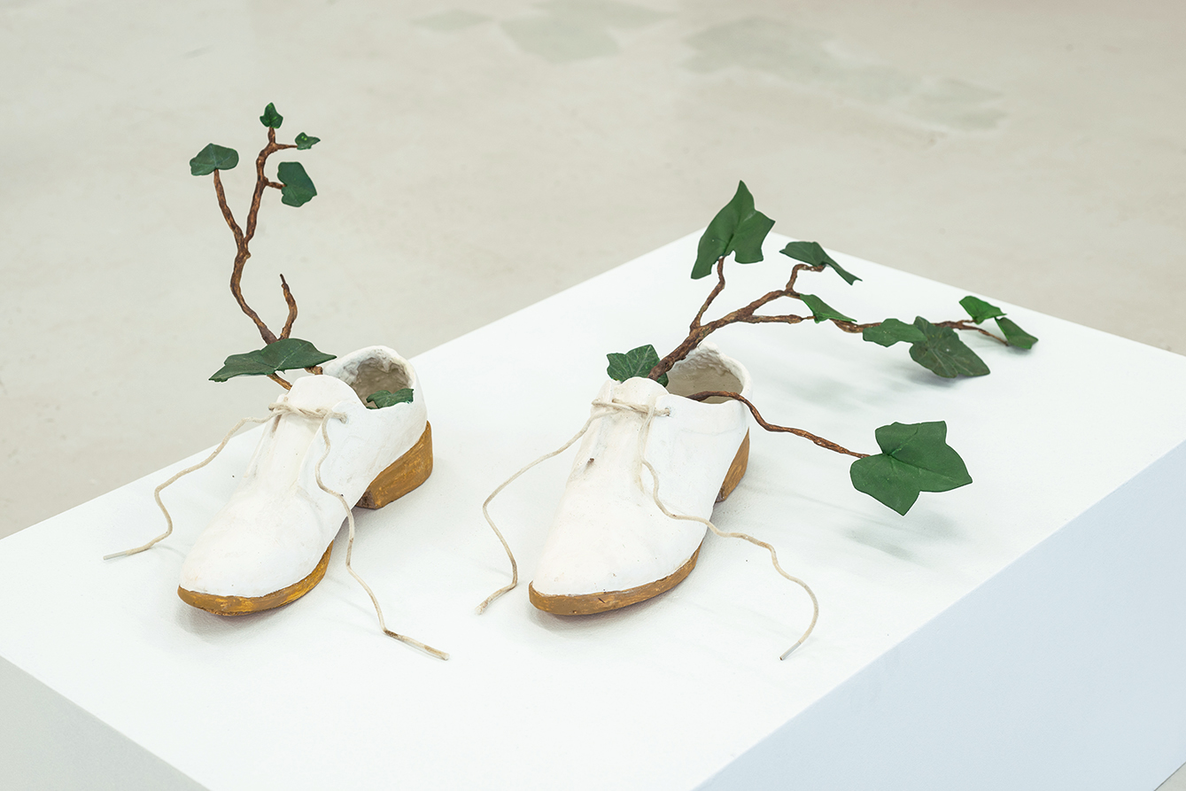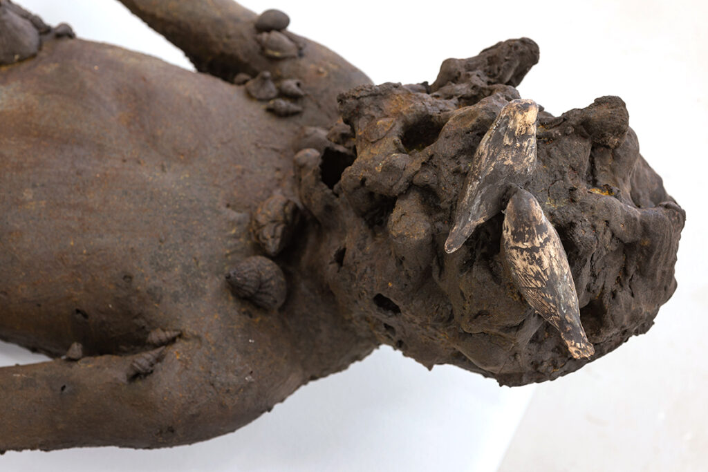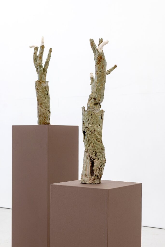 The starting point is parts of the human body, where artisanal processes such as modeling and casting are used. Furthermore, these parts are connected with other forms and objects, often found materials or leftovers. The intuitive and subconscious play a major role in the practice.