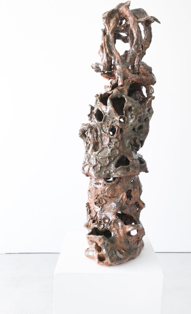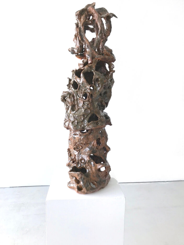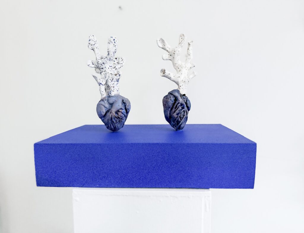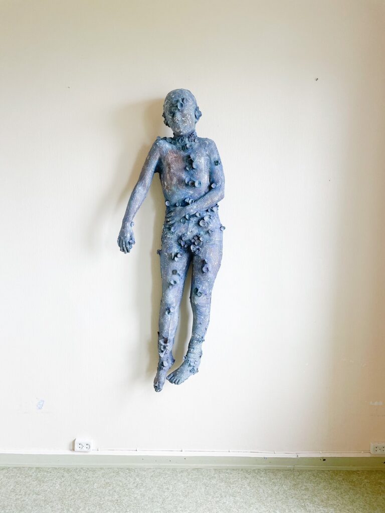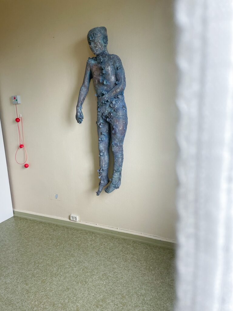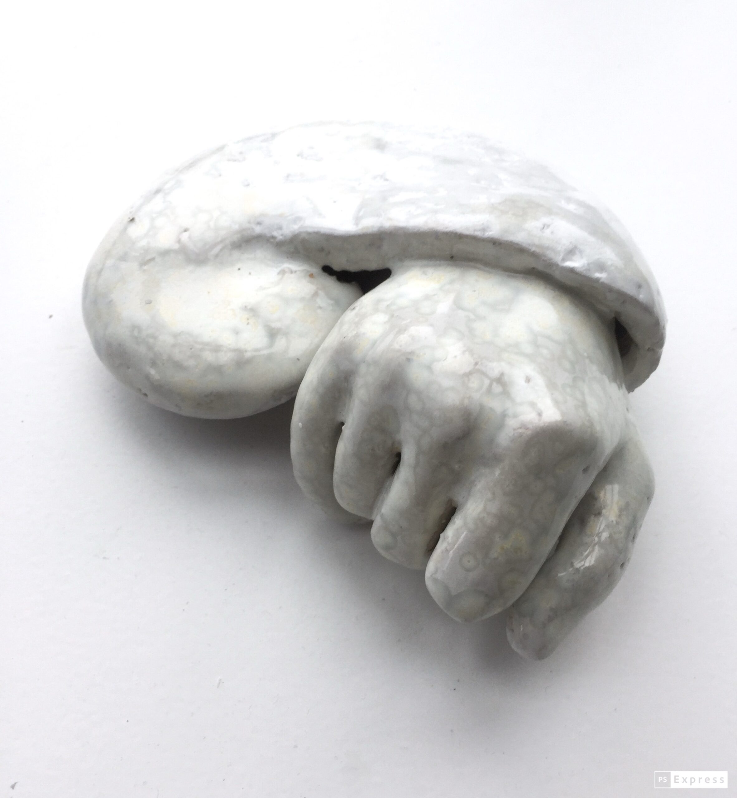 The starting point is parts of the human body, where artisanal processes such as modeling and casting are used. Furthermore, these parts are connected with other forms and objects, often found materials or leftovers. The intuitive and subconscious play a major role in the practice.