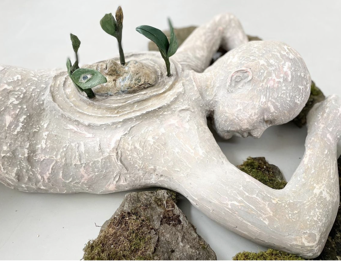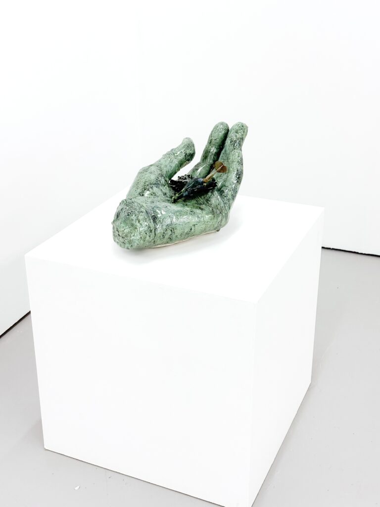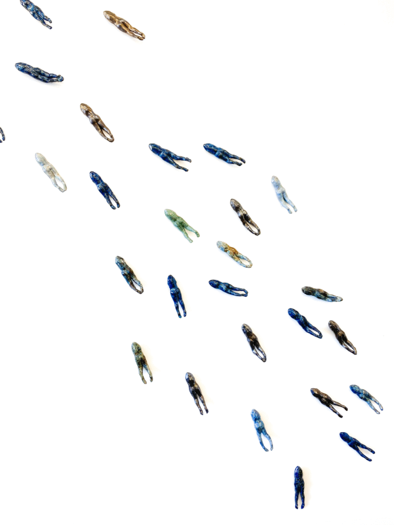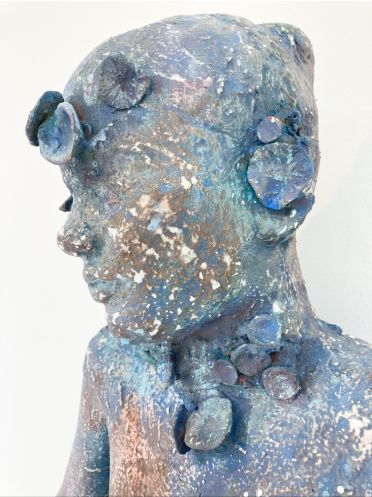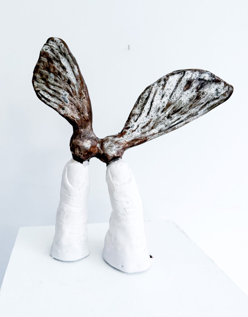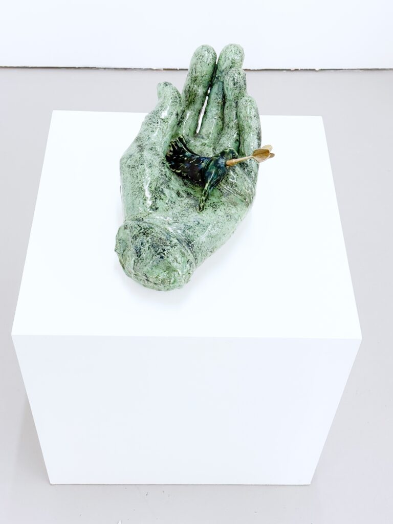 The starting point is parts of the human body, where artisanal processes such as modeling and casting are used. Furthermore, these parts are connected with other forms and objects, often found materials or leftovers. The intuitive and subconscious play a major role in the practice.