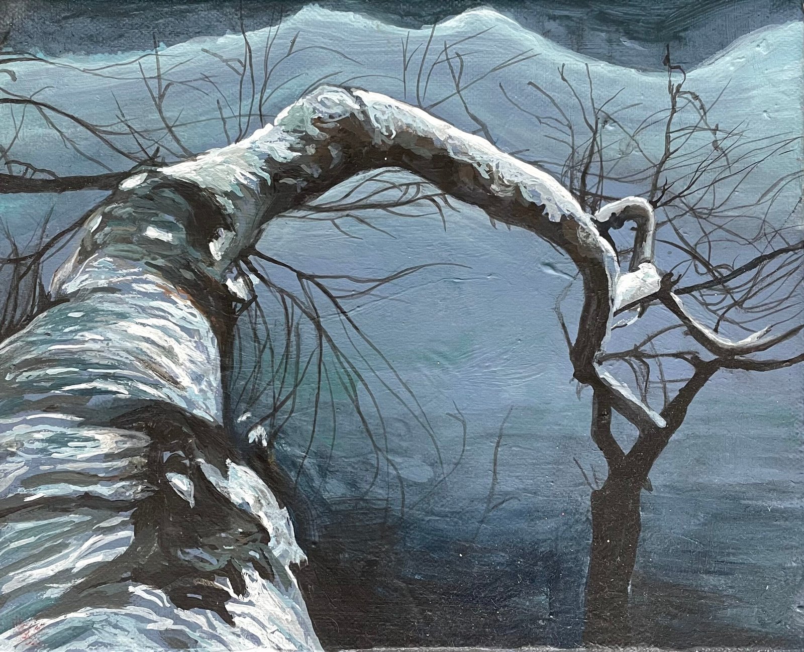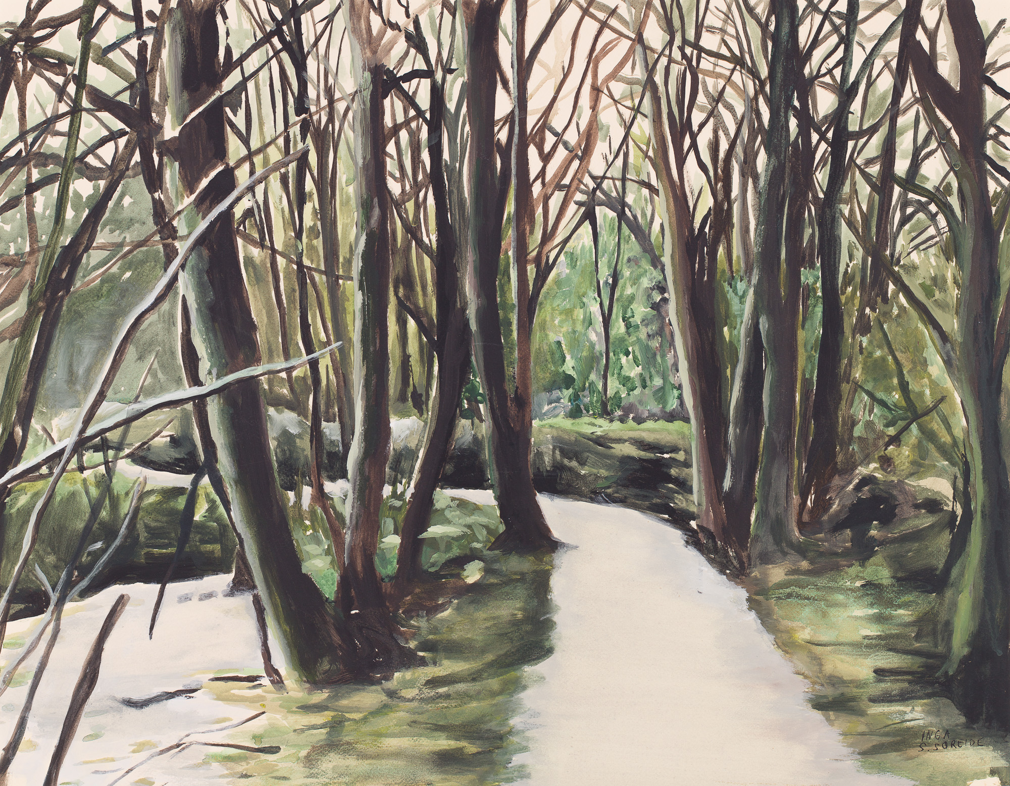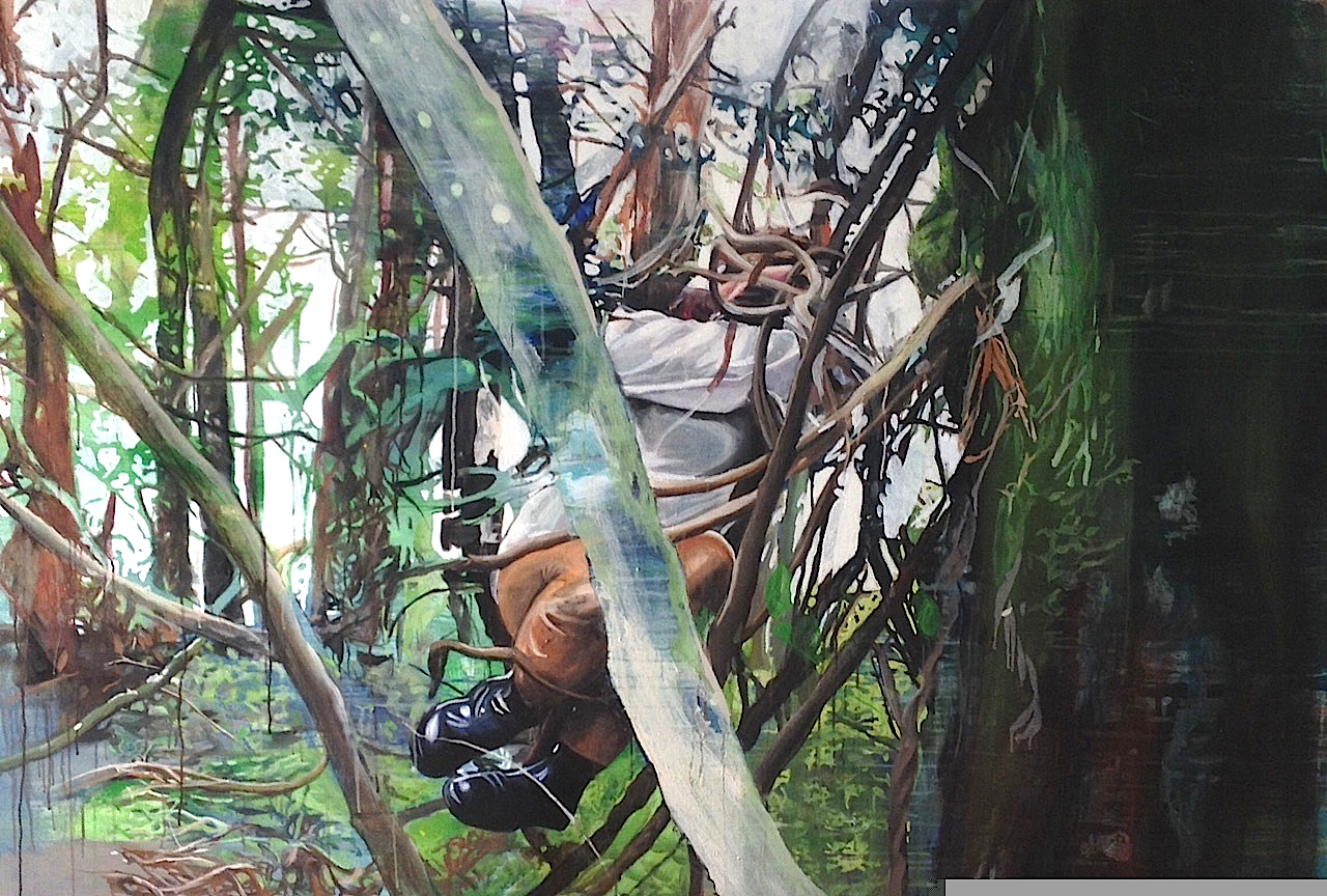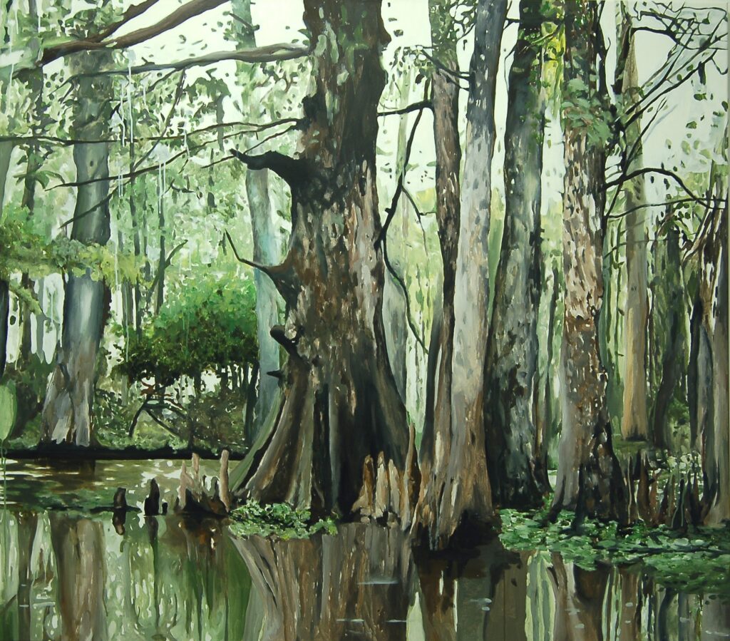 I show acrylic paintings, where the motif is marsh, pond and swamp landscape, which both refer to something mental, mythical, insurmountable, helpless, and stagnant. According to Japanese creation mythology, it is said that in the beginning the world was just a muddy swamp of water and earth. In relation to my paintings, four wax sculptures are presented. They contain a surrealist idiom, but touch on existential themes.” – Inga S. Søreide