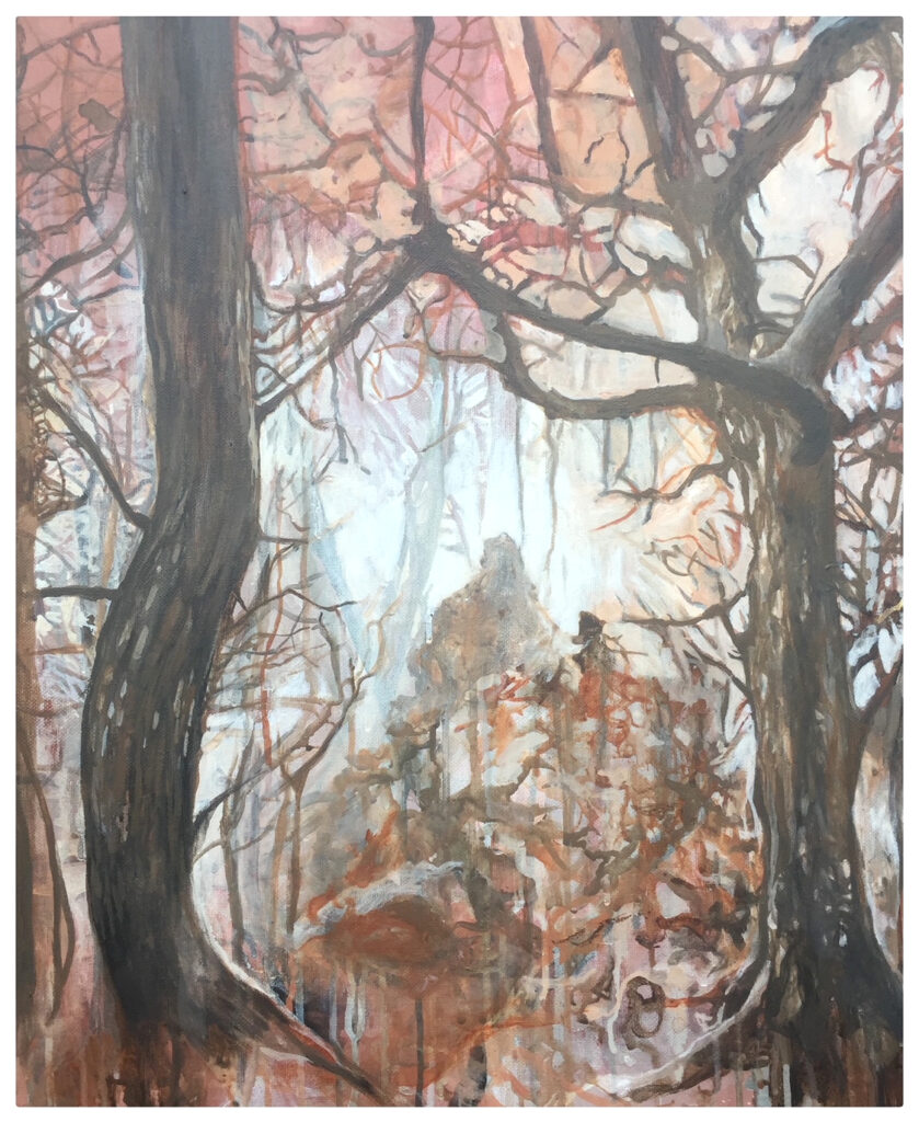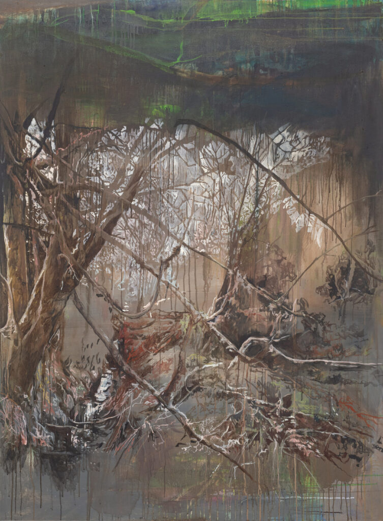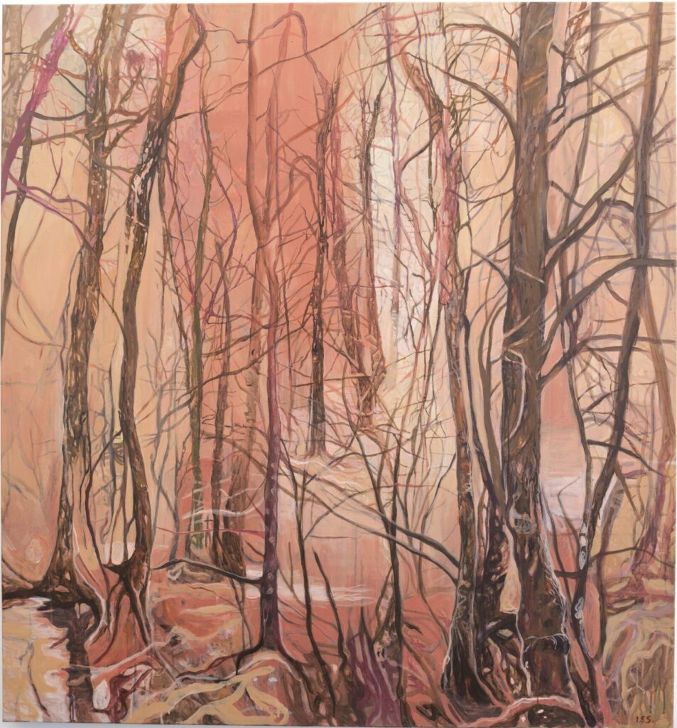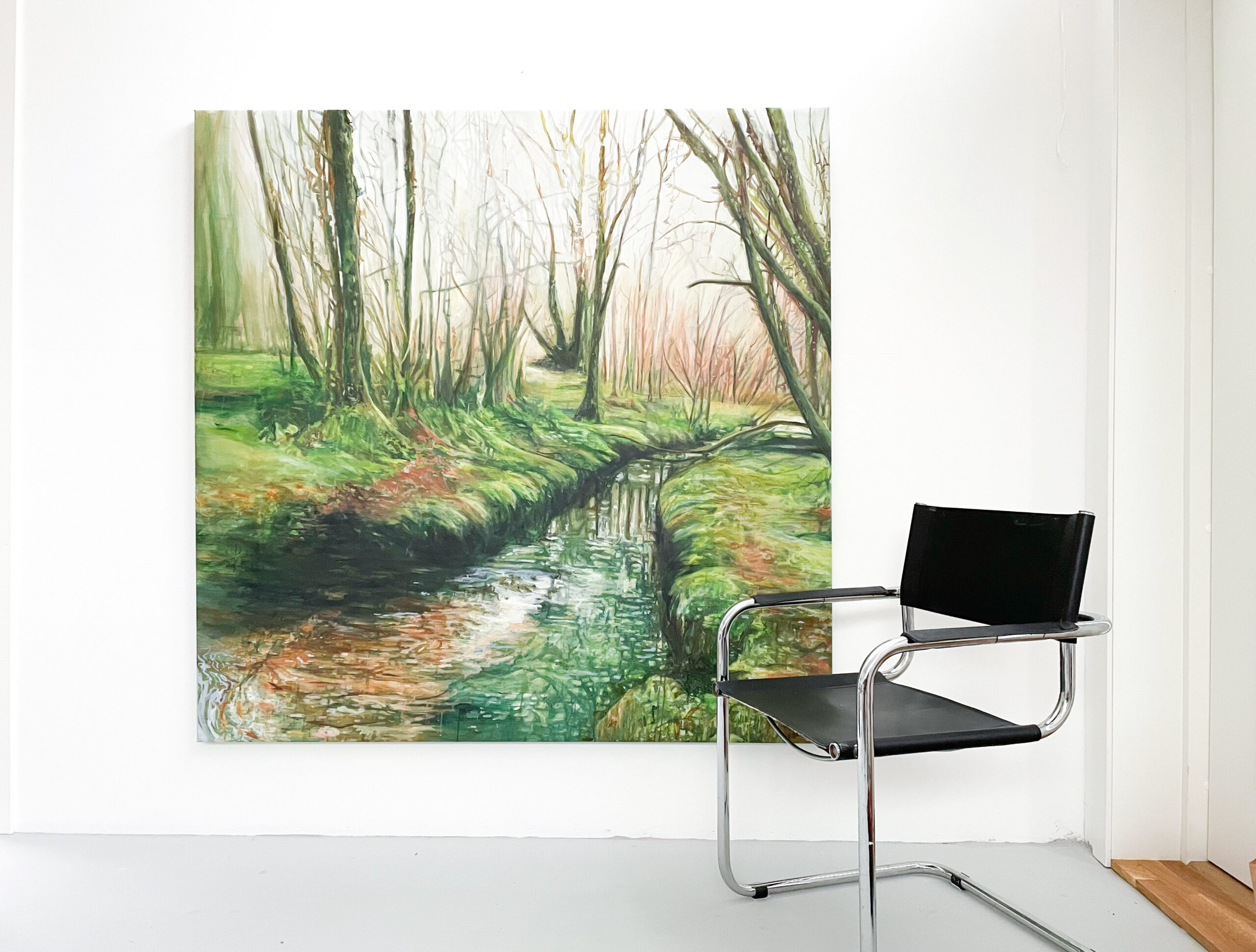 The motifs in the paintings have a motif circle with elements from landscapes and sculptures. The landscapes are taken from memories, where past and present meet. Different layers and parts are combined into new compositions and motifs.