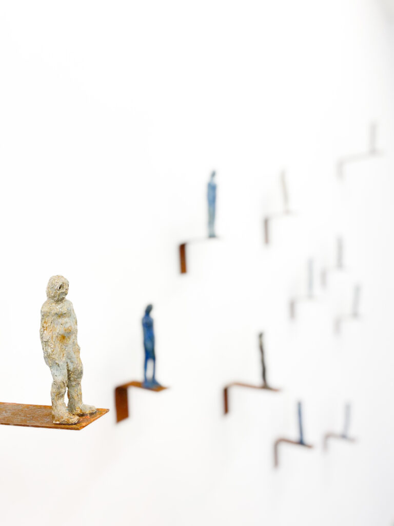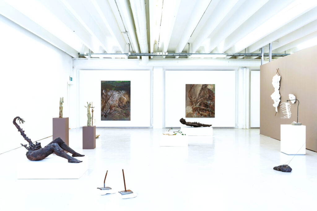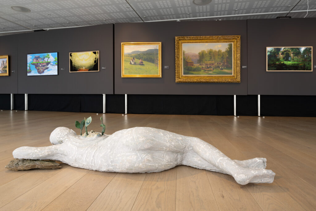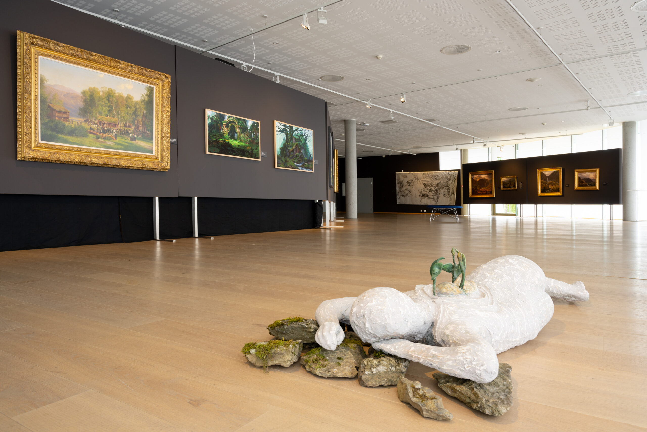 In the paintings, the motifs are swamps and marsh landscapes where the sculptures appear in various situations.