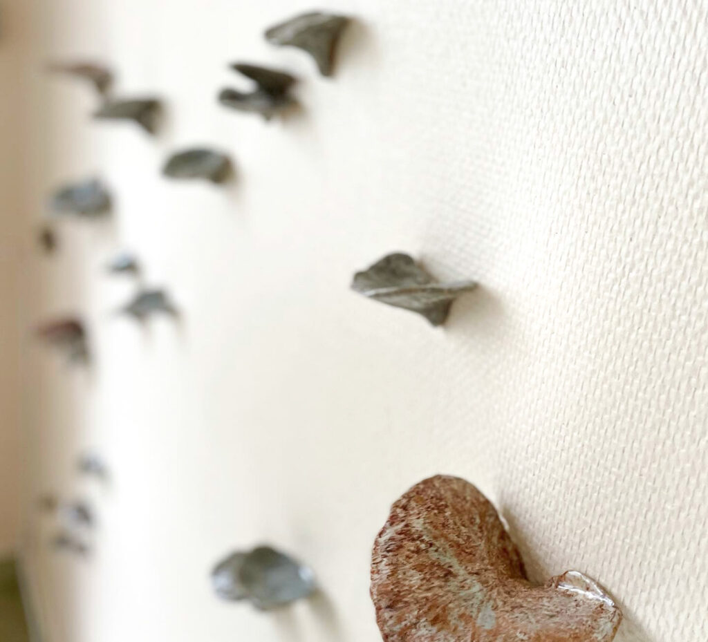 “A Resonance in the Skull” evokes a sense of movement—something echoing, repeating, or reverberating. Perhaps even something on the verge of breaking down, surrendering, or looping endlessly. These words serve as a backdrop for the works in this exhibition: pieces in flux and transformation, echoing themes of evolution and evolutionary psychology.